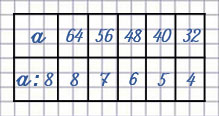 56 : 8 = 7