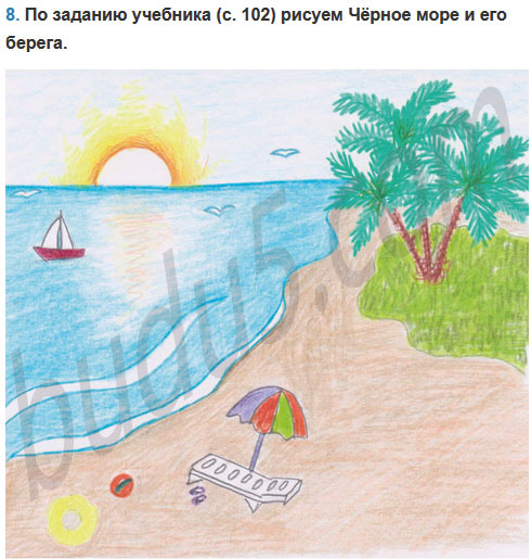 8. По заданию учебника (с. 102) нарисуй Чёрное море и его берега.