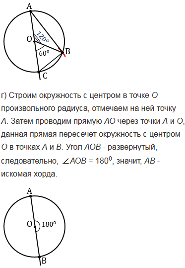 Начертите окружность с центром О и отметьте на ней точку А. Постройте хорду АВ так, чтобы: а)